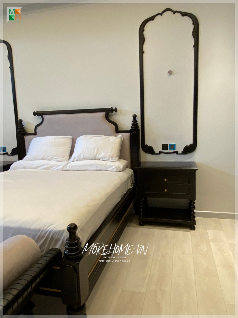 cấp Việc sử dụng tab đầu giường gỗ tự nhiên màu đen phong cách Indochine để tô điểm trang trí cho không gian tiện nghi thẩm mỹ cao cấp sẽ làm nên sự khác biệt.